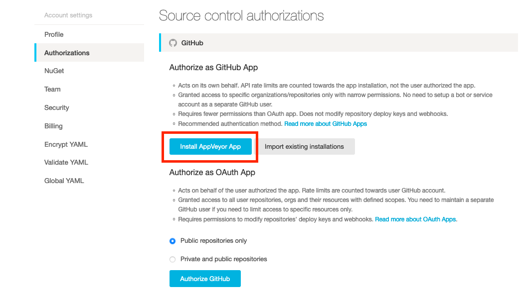 Navigate to the project settings page of your repository in AppVeyor CI.